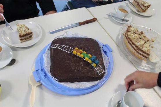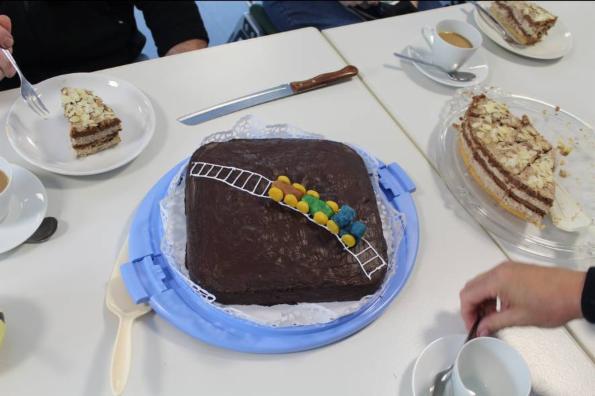 Zur Stärkung der Teilnehmer hatte ein Teilnehmer extra einen Kuchen, welcher mit einer Eisenbahn bestückt war, mitgebracht.