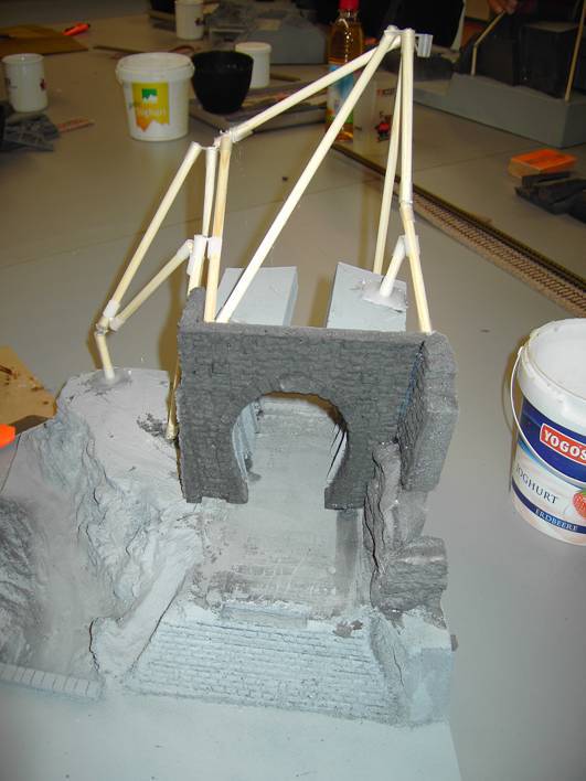 Bei diesem Modul musste ein Tunnelportal an zwei Stellen getrennt und mit Tunnelinnenwände aufgeklebt werden.