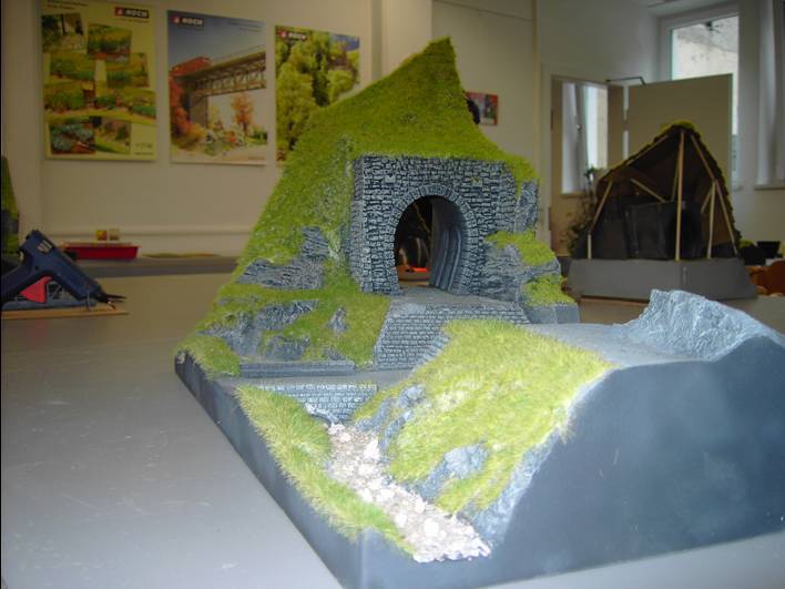 Tunnelportal und Unterkonstruktion aus Terra-Form für den Bergaufbau.